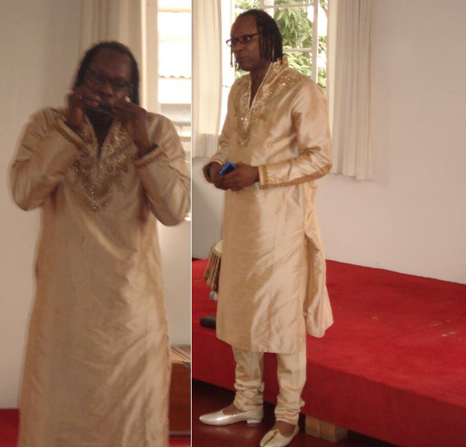 Meredith featured on harmonica at a music festival at the Theosophical Society in Nairobi, Kenya